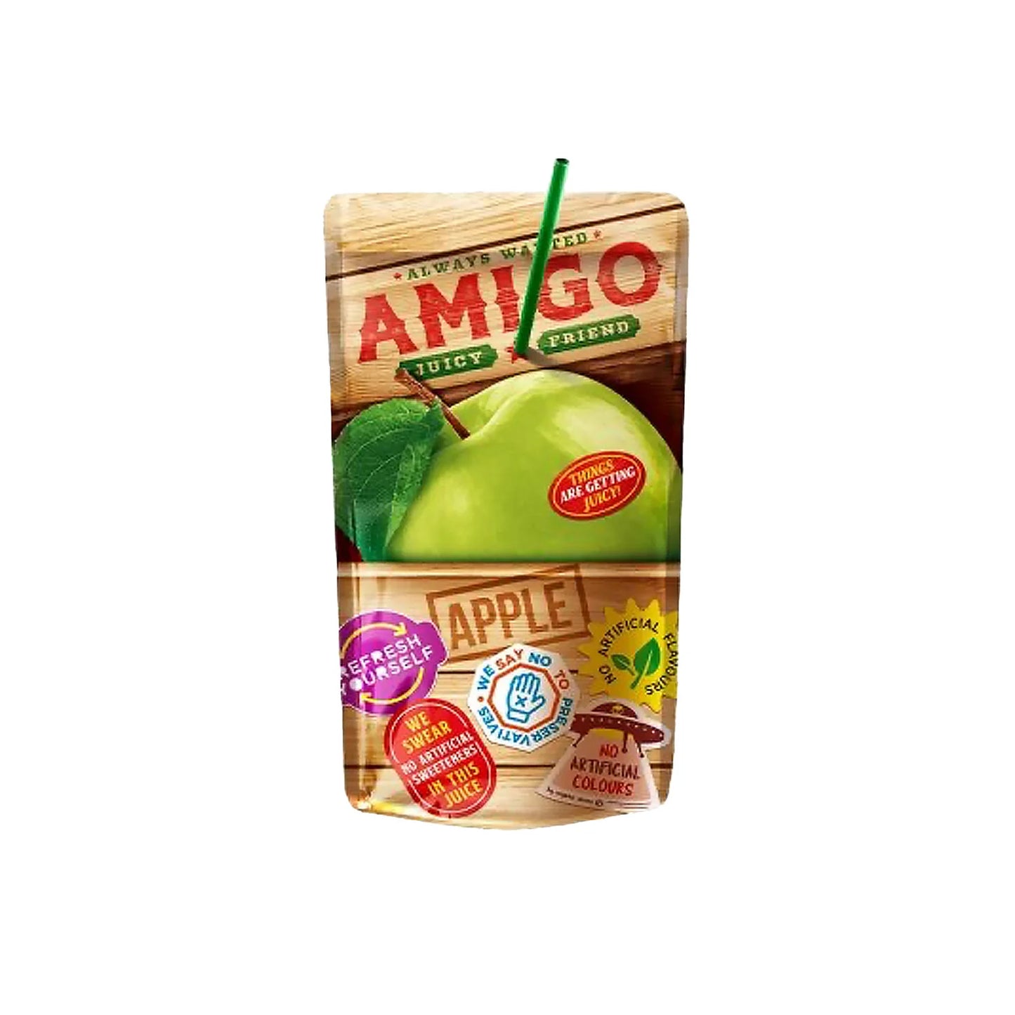 Regulärer Preis 0,49 €Frisch, fruchtig und einfach lecker – Amigo Apple 200ml bringt dir den puren Apfelsaftgenuss für unterwegs.