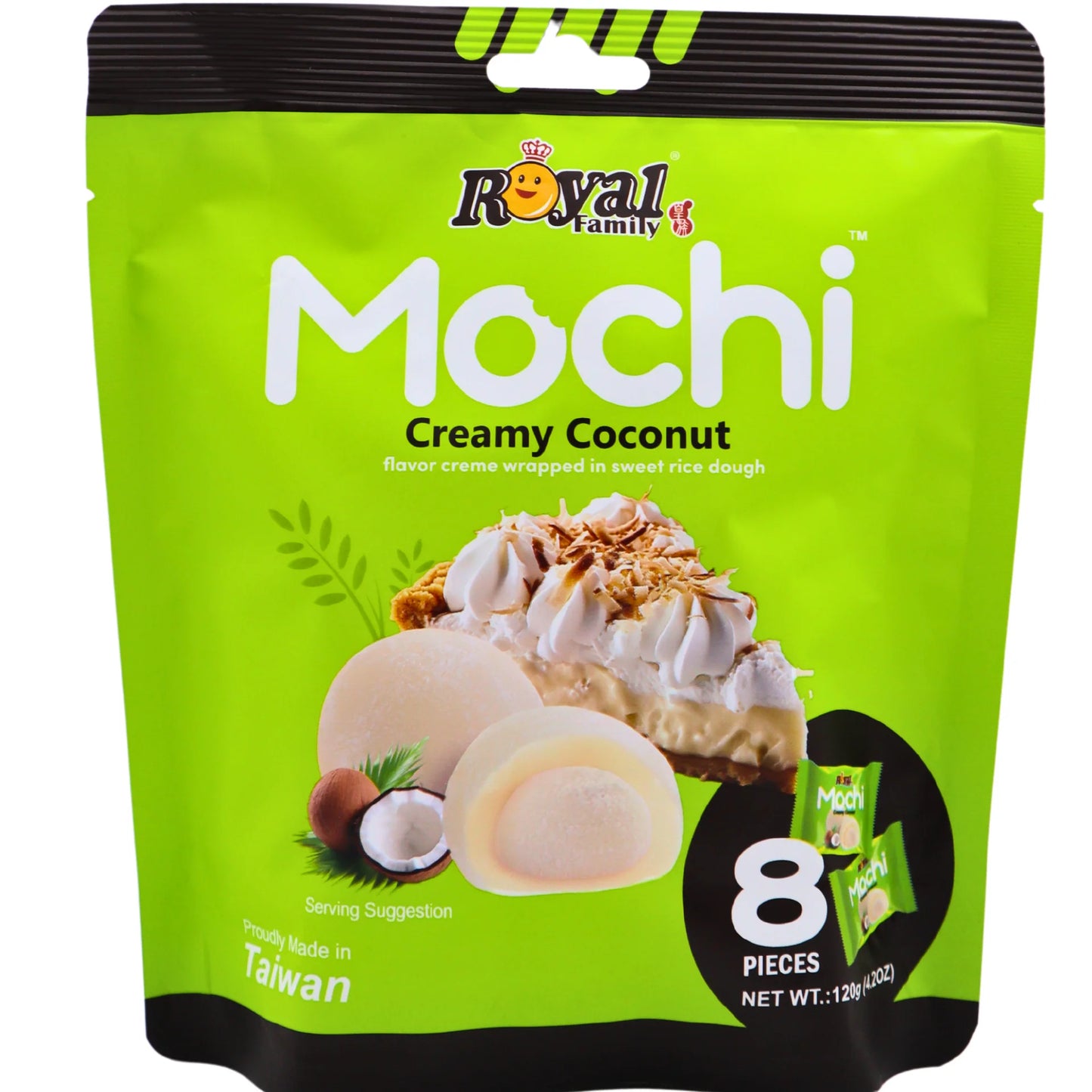 Der Royal Family Mochi Creamy Coconut (120g) vereint die weiche, elastische Textur von Mochi mit dem intensiven, cremigen Geschmack von Kokosnuss. Jeder Bissen dieser leckeren Süßigkeit bietet das tropische Aroma von frischem Kokosnussfleisch, umhüllt von zartem Mochi, das ein wahres Geschmackserlebnis bietet